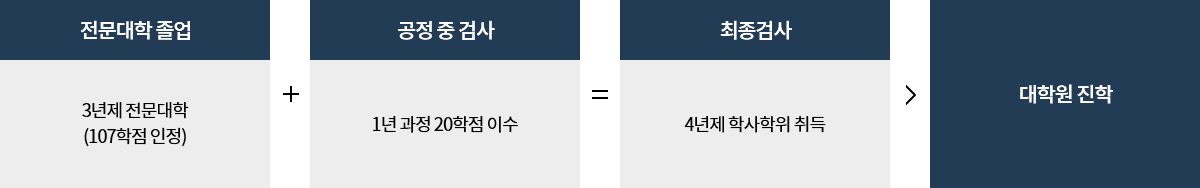 - 3년제 전문대학 또는 이완 동등 이상의 학력 인정 기준: 동일계열 3년제 전문대학의 졸업자(예정) 또는 이와 동등 이상의 학력이 있다고 인정되는자